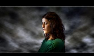Quand la lumière est trop forte, du rouge s'encre au noir profond de ses cheveux et en elle remonte la légende des origines comme un murmure d'énigmes.