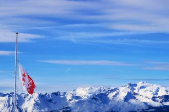 Drapeau valaisan malmené par le vent