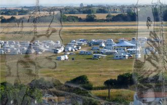 en l'espace d'une demi-journée le champ s'est couvert de caravanes; "une mission" pour les gens du voyage, tout prés de la piste d'envol de l'aéroport?