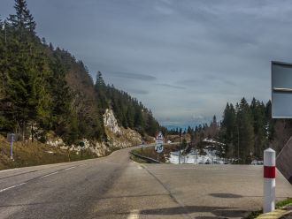 Route de la faucille direction Gex, au loin le mont blanc .
