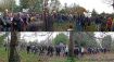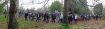 Manifestation écologique dans le bois menacé de destruction partielle. Benoît Biteau député écologique anime le rassemblement.